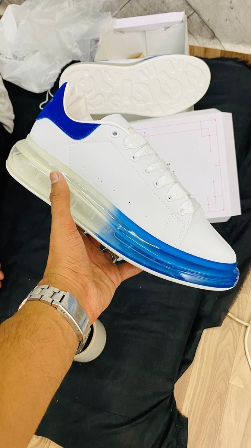 Alexander McQueen III Oversized Air Crystal Sole Sneakers White Navy
