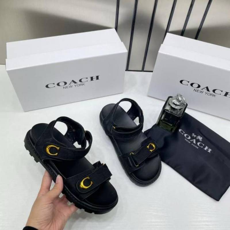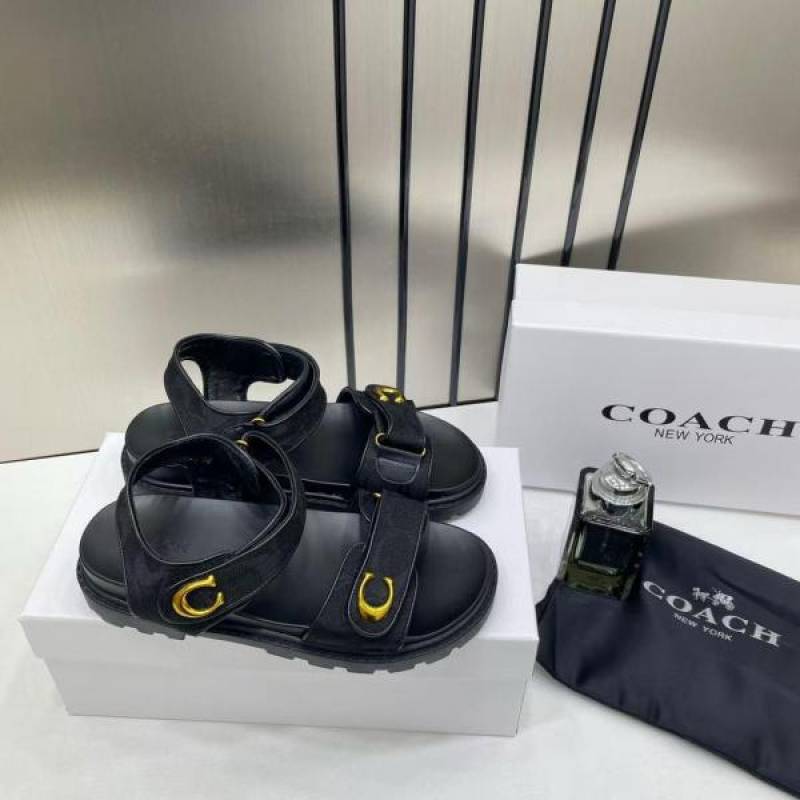 • Coach_Plain__Black_Sandals_Flats_For_Women_With_Original_Box_And_Dustcover