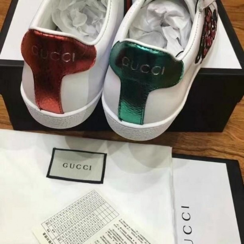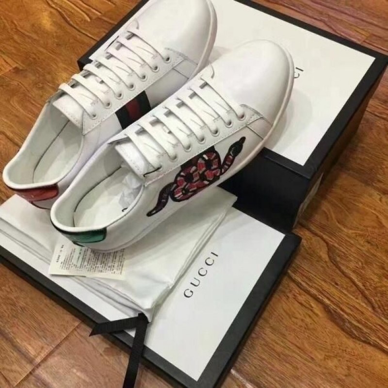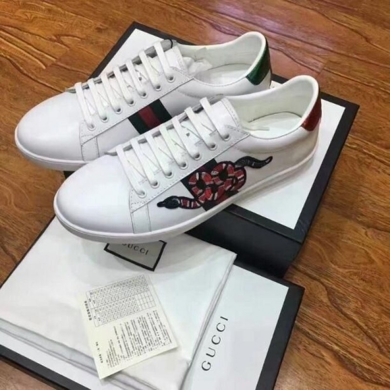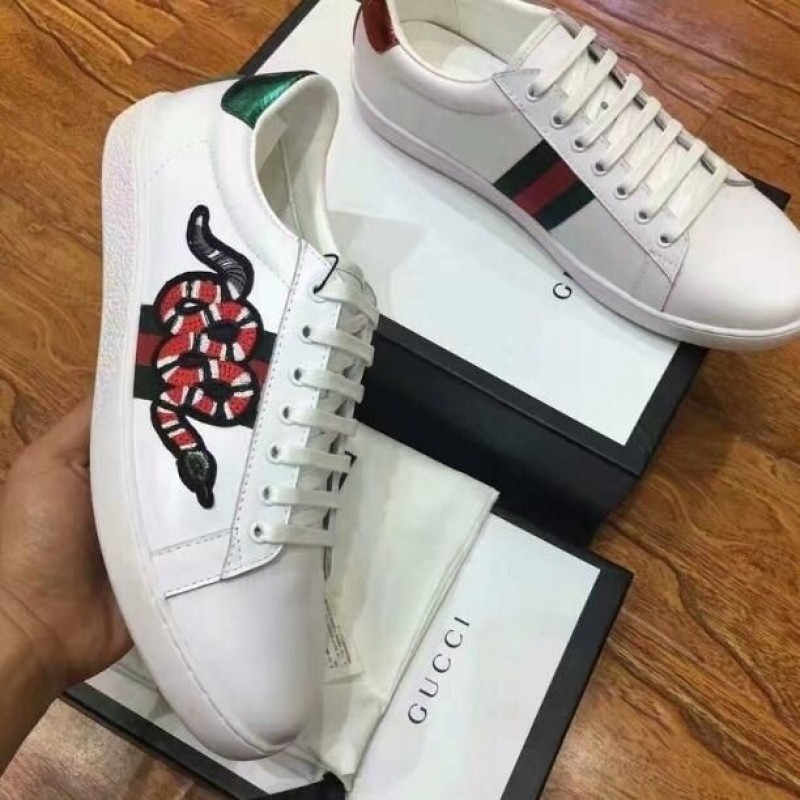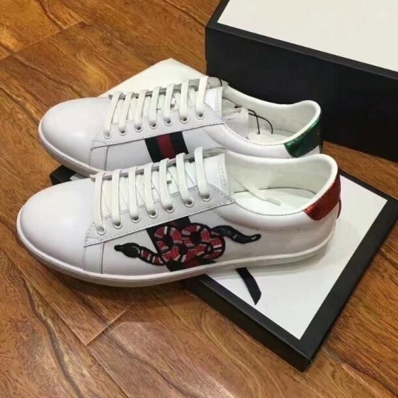 GucciUnisex Trimmed Embroided Leather Sneakers Snake