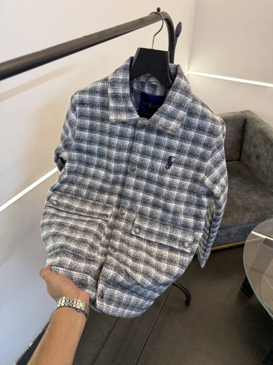 Ralphlauren 03 imported shacket with front double pocket and brand button