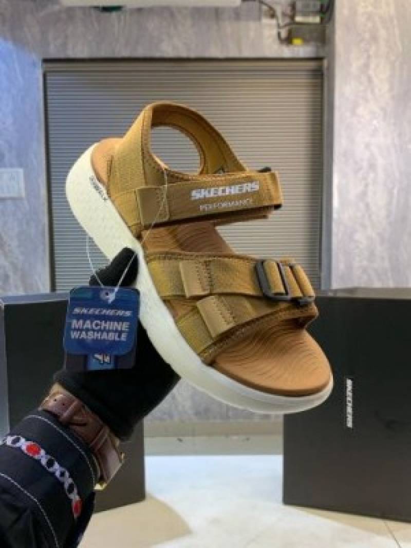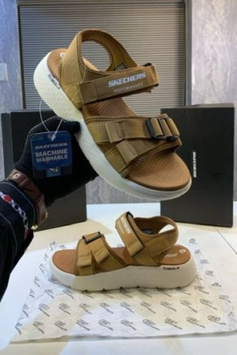 Skechers--Go-Walk-tan-white-Premium-Sandal